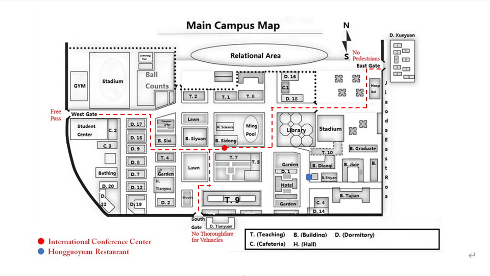 Subway: Get out of the station and take the subway line 9 to the National Library station, and then transfer to the subway line 4 to Xizhimen Station (¥3). Get out from exit A, take bus Nos. 16, 26 to Beijing Jiaotong University Station (¥2), then go to the South Gate of Beijing JiaotongUniversity on foot.