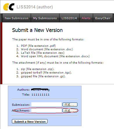 4 在论文终稿提交界面,务必选择“Attachment”按钮进行终稿压缩包提交。如下所示。